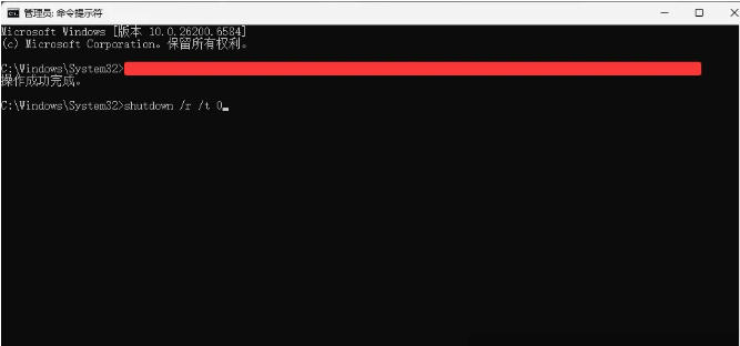 4、再次输入“ shutdown /r /t 0”命令;